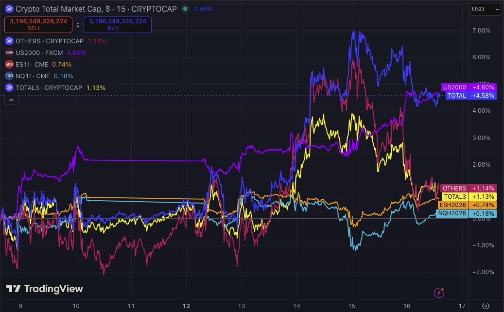 宏觀環境為本週上漲提供關鍵支撐,美國最新公布的 CPI 數據回落至 2.7%,優於市場預期,大幅緩解了投資人對聯準會維持高利率的擔憂。通膨壓力的減輕致使美元指數走軟,資金迅速回流風險資產。在明確的宏觀利多催化下,加密市場向上突破,雖然週末前受監管消息擾動出現小幅震盪,但整體結構已確立為偏多格局。