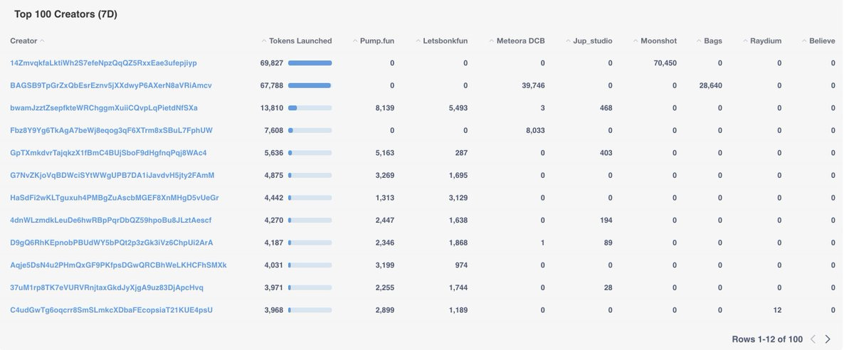 顯示過去 7 天部署智能合約最多的地址,可作為研究對象補充地址庫。