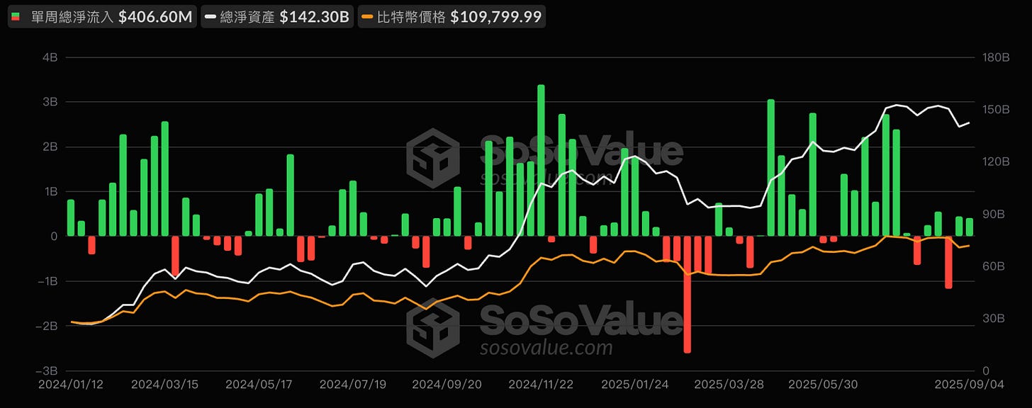 BTC ETF 淨流入流出反轉,在 9 月 4 日出現了 2.23 億美元的巨額淨流出,突然中斷了連續兩天的淨流入趨勢。