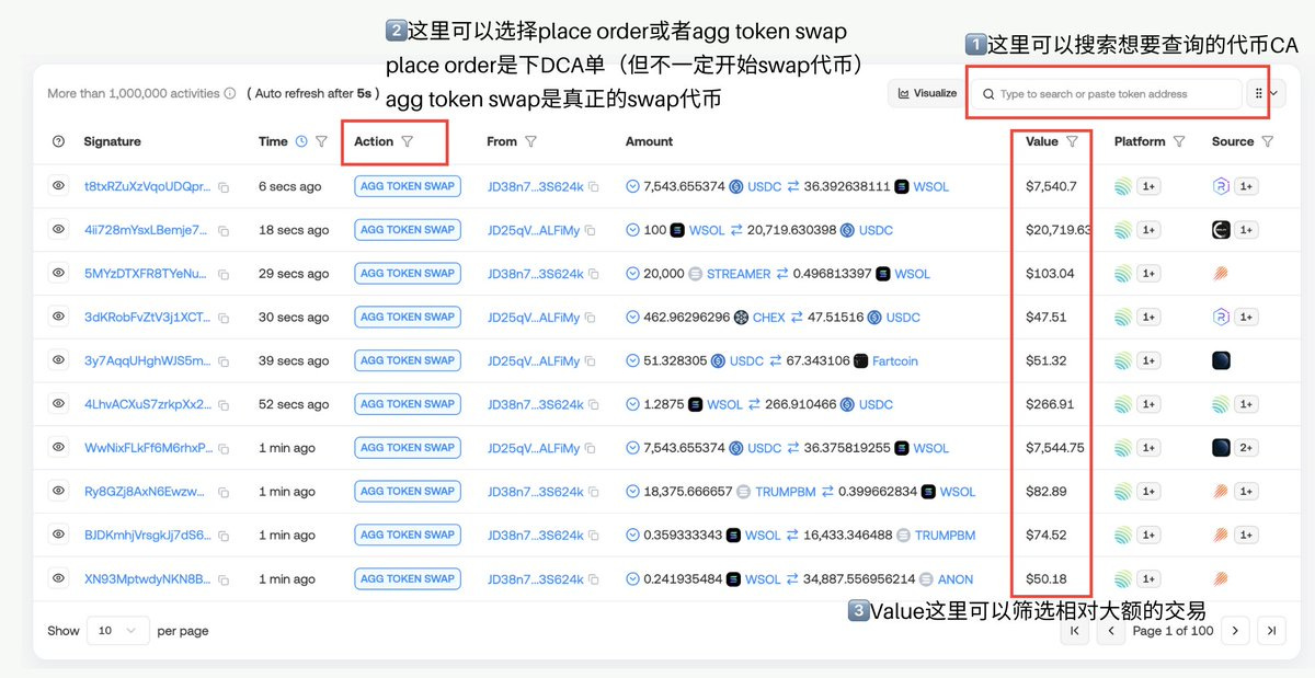 Jupiter DCA:提供單位交易額和交易動態,數據每 15 秒更新。