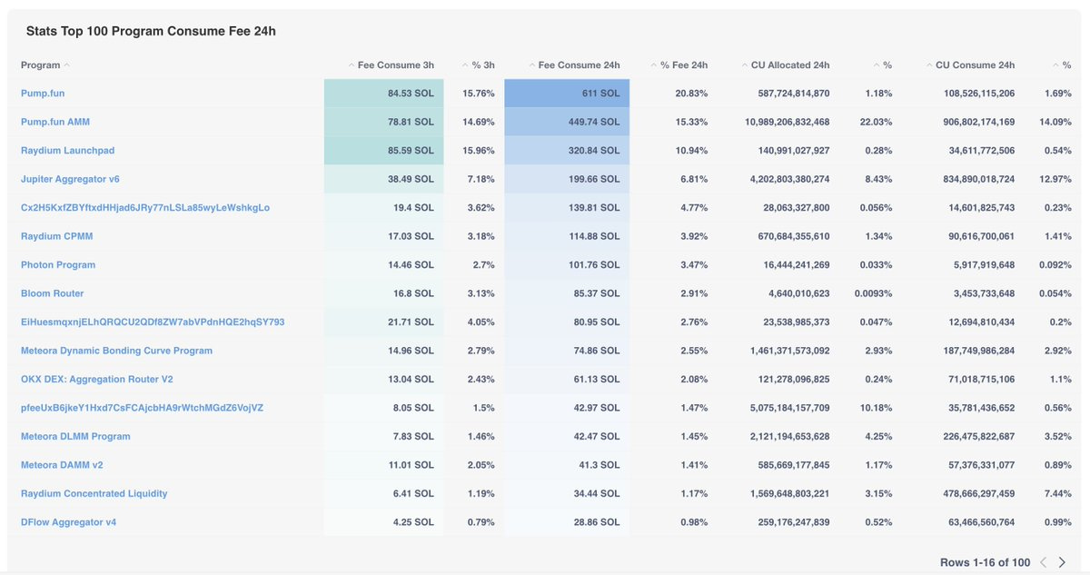 Program:觀察 Solana 上活躍合約和地址排名變化,可追蹤新興專案或套利地址。
