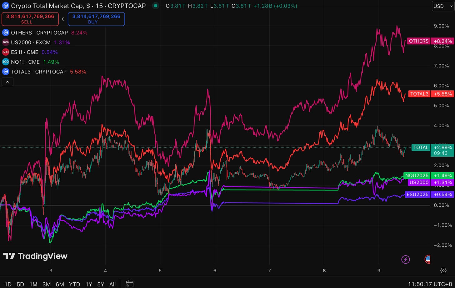 SEC 於 9/4 公布將針對數位資產的規則調整與監管方向釋出相對友善訊號,降低了部分合規不確定性。同時,9/8 也傳出納斯達克計畫推動推出代幣化證券交易,如果最終通過就會是美國首例,也將進一步強化「資產代幣化」的敘事,並推動傳統金融跟區塊鏈的深度整合。