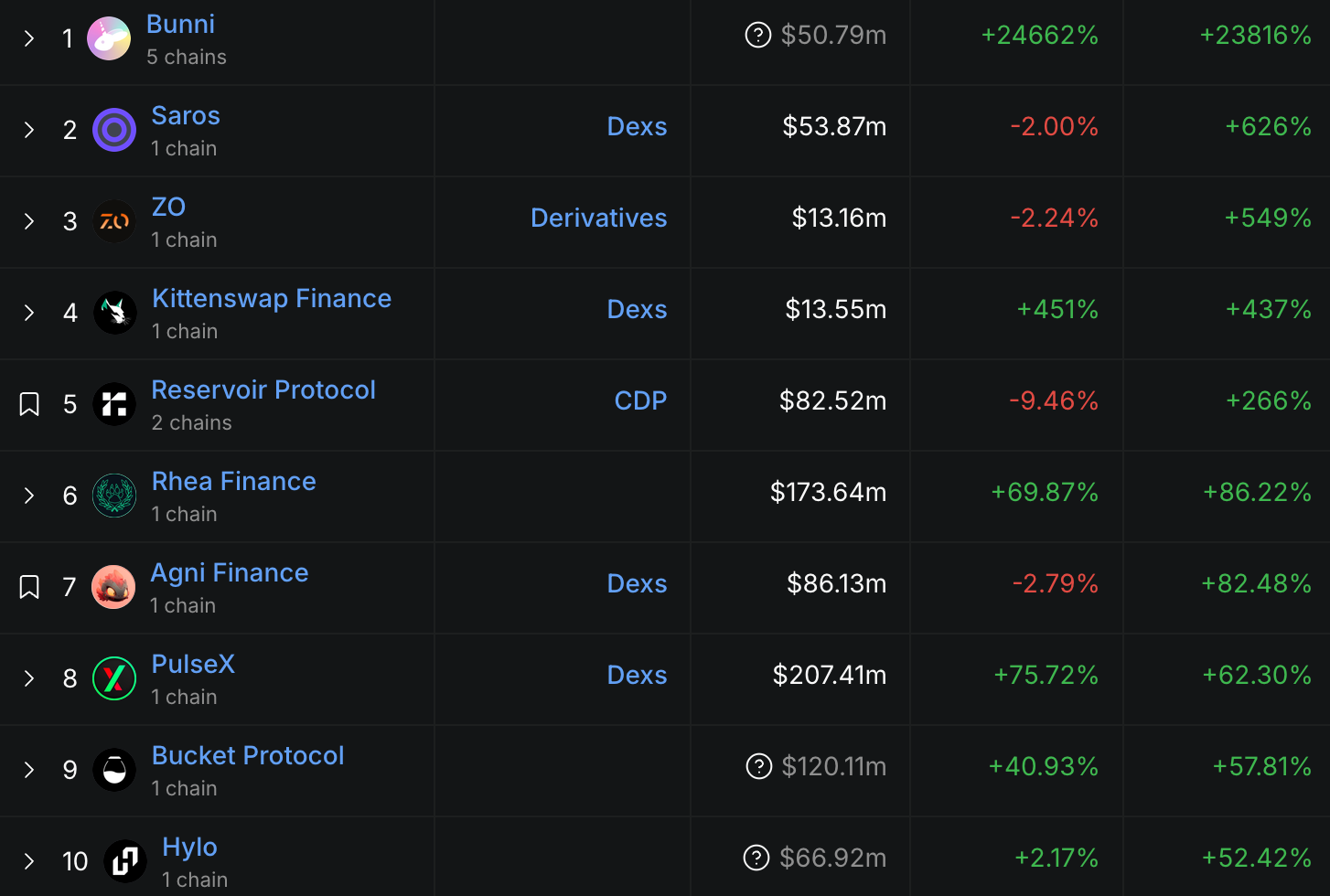 TVL 漲幅榜 Top 10: