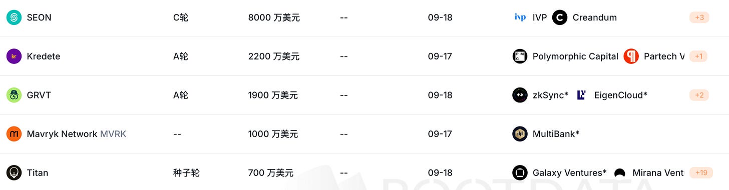 Titan(700 萬美元)為 Solana 上的 DEX 聚合器,本輪由 Galaxy Ventures 領投,Frictionless、Mirana、Ergonia、Auros、Susquehanna 以及多位天使投資人參投。