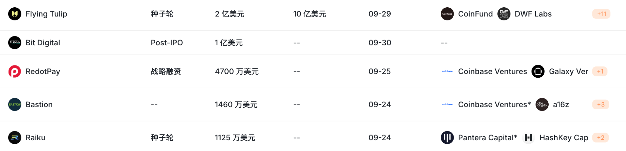 Raiku(1,125 萬美元)Raiku 是一個專注於強化 Solana 核心功能的協調層,投資機構包括 Pantera Capital、HashKey Capital、Jump Crypto 和 Lightspeed China Partners 等。