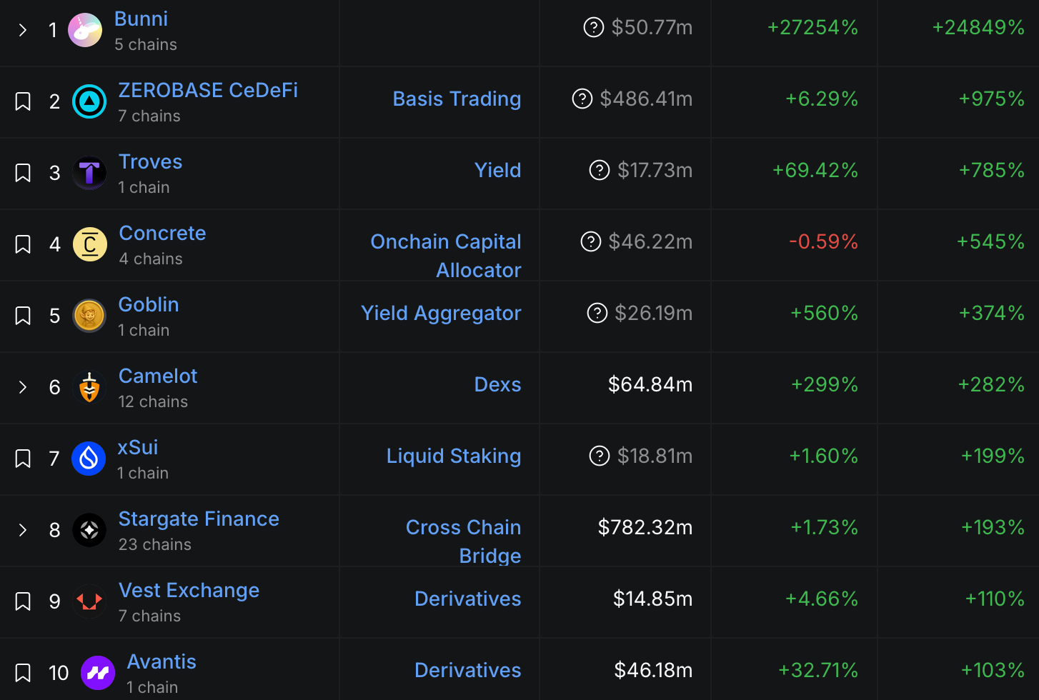 TVL 漲幅榜 Top 10: