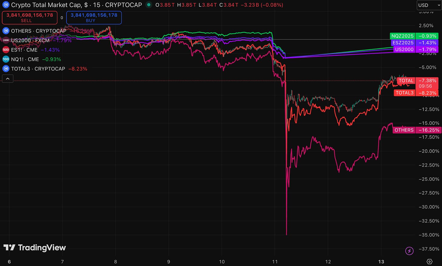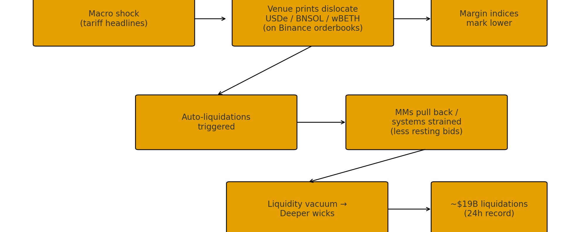 過度槓桿、薄弱的基礎設施、以及自我強化的清算連鎖反應同時爆發。