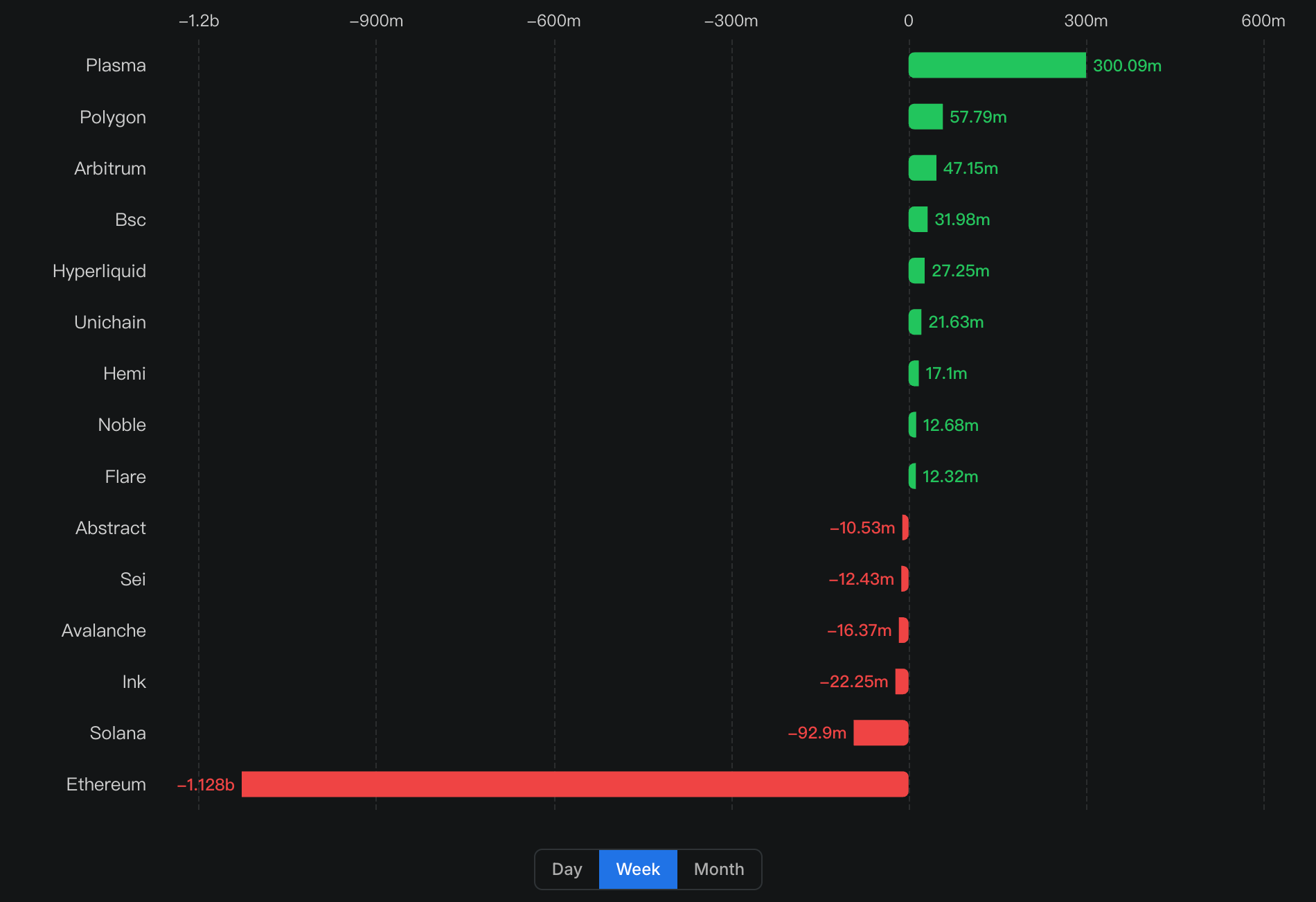 本週 Plasma 的淨流入位居第一,主要原因是 Maple Finance 的機構資產將與 Aave 進行整合,syrupUSDT 在 Aave 的 Plasma 市場上線,在短短的幾分鐘內就吸引了大量的資金流入,達到了 1.5 億美元的供應上限。