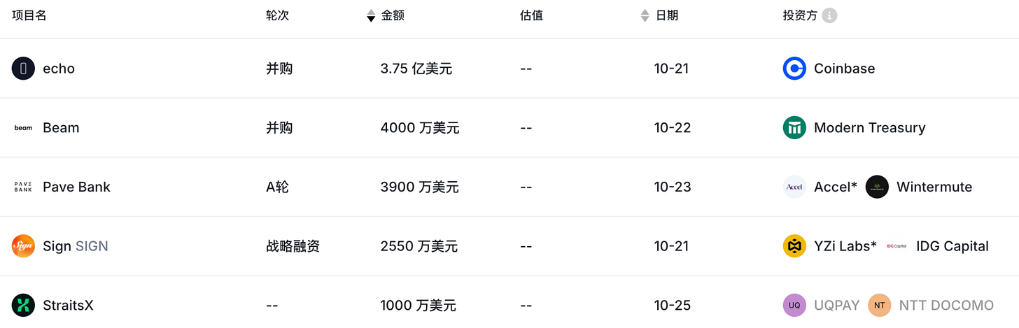 Pave Bank (3900 萬美元)Pave Bank 完成 3900 萬美元 A 輪融資,Accel 領投,Tether Investments、Wintermute、Quona Capital、Helios Digital Ventures 等參投。