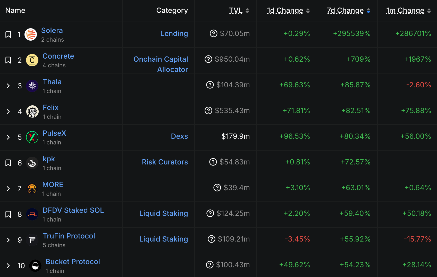 TVL 漲幅榜 Top 10: