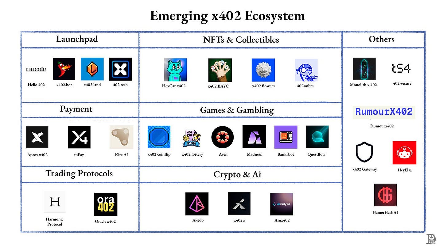 x402 正在加速演進,展現作為支付、交易及遊戲等多領域應用的新動能。越來越多 agents 開始利用 x402 支付模型、API 及鏈上服務,支付、交易與遊戲逐漸成為最具潛力的應用場景。