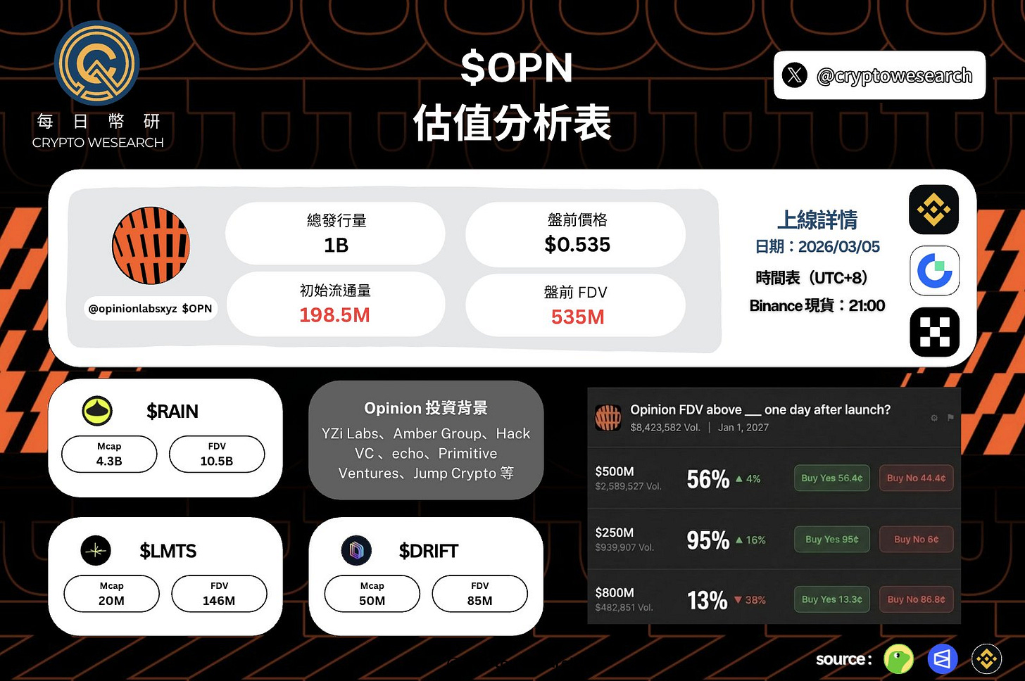 預測市場新星 Opinion 🟠 $OPN 代幣估值一覽