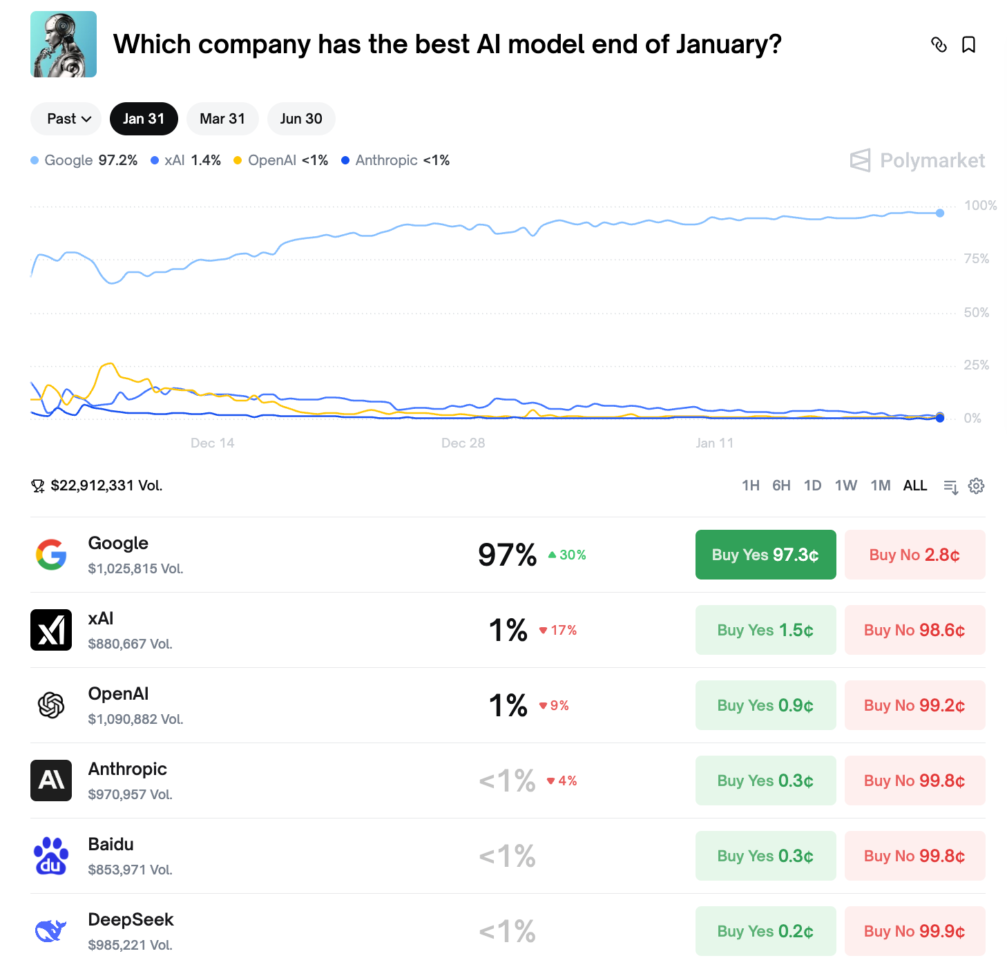 Link: https://polymarket.com/event/which-company-has-the-best-ai-model-end-of-january